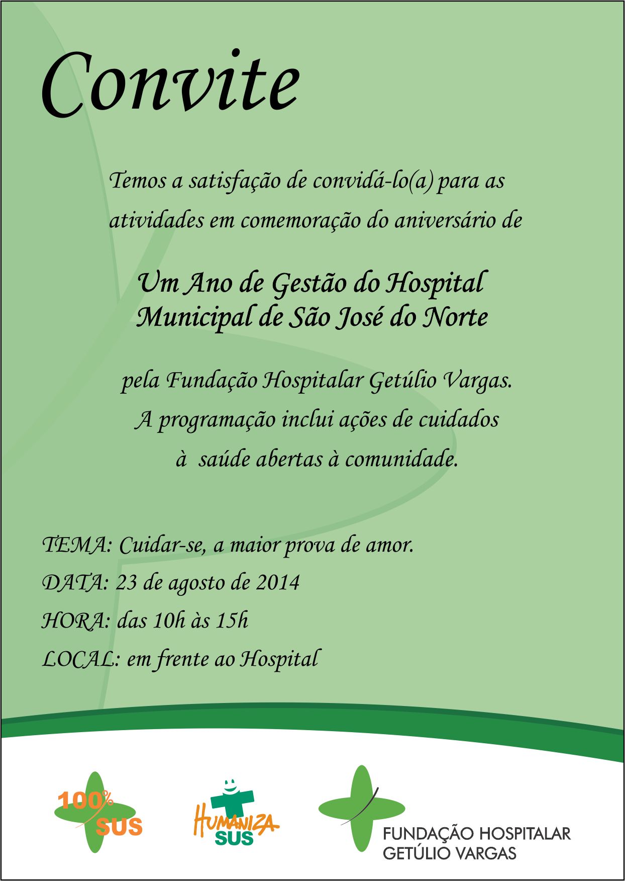 No dia 22 de agosto de 2014, o Hospital Municipal de São José do Norte completa um ano, sob a gestão da Fundação Hospitalar Getúlio Vargas. Neste período, foi empreendido grande esforço no sentido de qualificar a atenção hospitalar à comunidade do município.