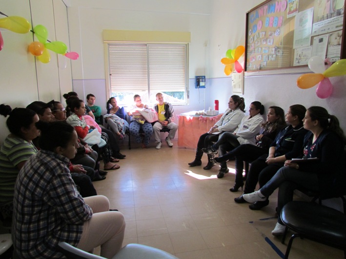 Uma turma de mamães que ganhou bebê no Hospital Municipal Getúlio Vargas participou de uma palestra na recepção do Centro Obstétrico, dia 8 de agosto, para esclarecer dúvidas mais freqüentes sobre amamentação. A atividade foi conduzida pela coordenadora da Linha Mãe, Bebê e criança do HMGV, enfermeira Patrícia Bienert. As enfermeiras Fátima e Marivane e a nutricionista Monique também auxiliaram nas orientações às usuárias da maternidade, que também tiveram a oportunidade de integrar a roda de amamentação. No final da conversa, a enfermeira Patrícia presenteou as mamães com sapatinhos de lã para aquecer os pés das crianças neste inverno.