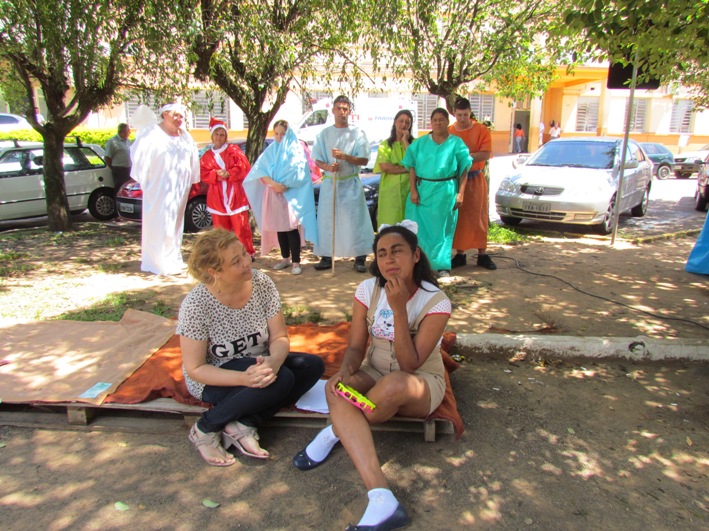 Com roteiro de Gládis Freitas do setor de Higienização, a peça relata a curiosidade de uma menina sobre o nascimento de Jesus e o Papai Noel. “Trata-se de uma encenação que esclarece o sentido histórico e religioso do Natal, relatando o nascimento de Jesus e a visita dos três reis magos”, comentou a coordenadora da Higienização, Cristiane Soares. “Recebemos o apoio dos trabalhadores de quatro setores do Hospital que se dedicaram para proporcionar momentos de descontração e felicidade aos usuários. Foi emocionante!”
