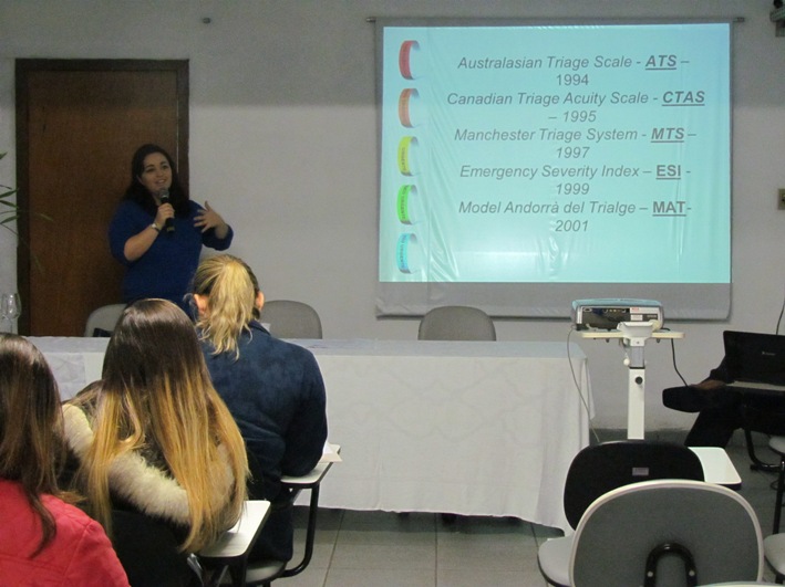 O segundo dia de programação da Semana de Enfermagem, na manhã desta quarta-feira (27/5), iniciou com o tema Classificação de Risco, apresentado pela enfermeira Camila Gerson Simões, residente em urgência e emergência da PUCRS. Ela esclareceu os protocolos usados para identificar o grau de prioridade no atendimento aos usuários quando chegam ao acolhimento dos hospitais. De acordo com a enfermeira, o ambiente deve ser acolhedor, limpo e privativo, garantindo a segurança do paciente. “É fundamental que o enfermeiro questione o paciente adequadamente, observando as queixas, sinais vitais e histórico de saúde. Na dúvida, manter a classificação de maior risco”, reforçou. “Precisamos manter o equilíbrio entre atendimento ágil, acolhedor e humanizado.”