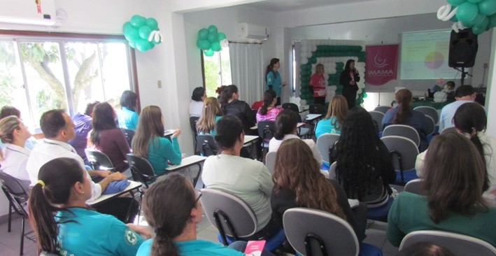 Na tarde desta segunda-feira (14/9), foi a vez do Instituto da Mama do RS trazer sua contribuição para a Semana Interna de Prevenção de Acidentes (Sipat) do Hospital Municipal Getúlio Vargas (HMGV) e unidades de Sapucaia do Sul. O Instituto foi representado pelas voluntárias Marli Marcon e Rosemarie Bothona. Entre as ações, foi citado o Programa Mamamóvel, uma unidade móvel do IMAMA composta por um caminhão equipado com mamógrafo, processadora de exames, consultório, sala de espera e sanitário. Outra iniciativa bastante conhecida é o Banco de Perucas, que é um serviço gratuito de empréstimo de perucas feitos às mulheres com câncer. As voluntárias também reforçaram a importância em conscientizar a população sobre o diagnóstico precoce do câncer de mama e as boas práticas em saúde. A Sipat segue até o dia 18 de setembro e acontece no auditório da FHGV.