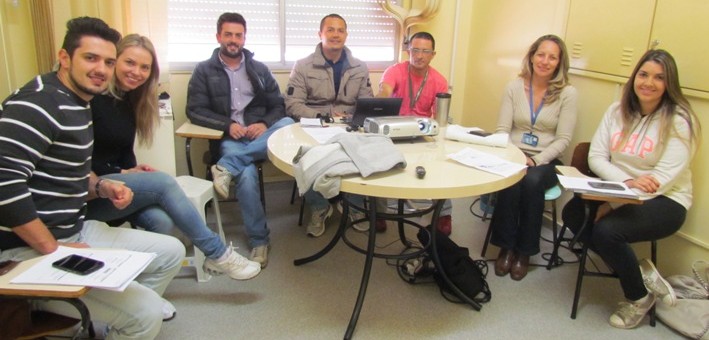 Alunos do curso de Fisioterapia da Unisinos, que fazem estágio no Hospital Municipal Getúlio Vargas (HMGV), apresentaram estudos de caso ao preceptor Rodrigo Ferreira (fisioterapeuta), na manhã desta quarta-feira (2/9). Os temas expostos abordaram AVC, Broncoaspiração, Indicação ou Contraindicação de Fisioterapia Motora (TVP) e Ginástica Laboral. As apresentações ocorrem sempre na primeira semana do mês.