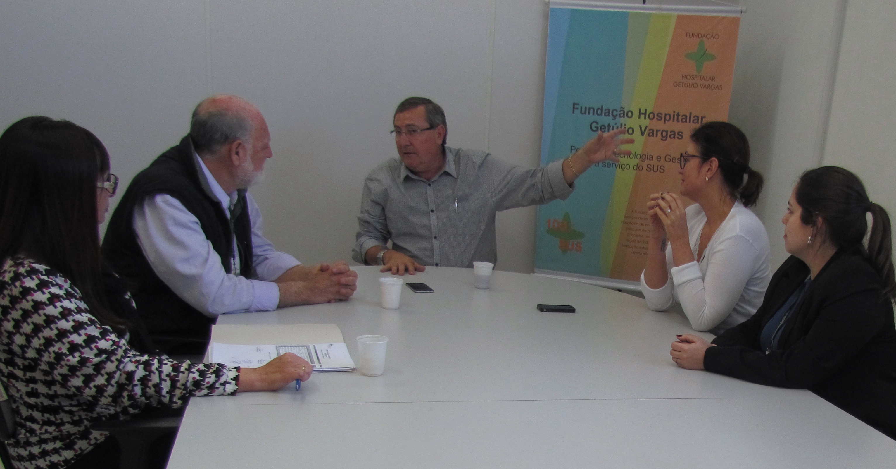 Na foto, encontro com prefeito Vilmar Ballin, de Sapucaia do Sul, cuja ação foi determinante para o pagamento da Folha dos trabalhadores da FHGV do município.