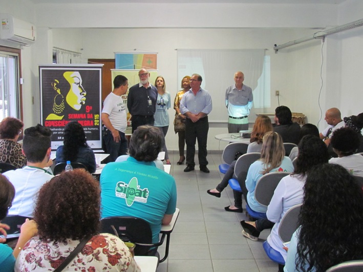 Trabalhadores da saúde e demais áreas lotaram o auditório da Fundação Hospitalar Getúlio Vargas (FHGV), na manhã desta quarta-feira (18/11), para prestigiar as atividades alusivas à 9? Semana a Consciência Negra de Sapucaia do Sul. O evento é promovido pela Prefeitura e recebe o apoio da FHGV.