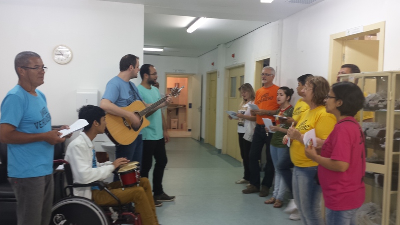 Na manhã do dia 25 de dezembro, funcionários e pacientes do Hospital Municipal Getúlio Vargas tiveram um belo presente de Natal: a equipe Parceiros Voluntários, com a supervisão da coordenadora da Linha de Cuidado em Saúde Mental do HMGV, Tatiane Severo, organizou um circuito de cantoria e música pelos corredores e unidades do Hospital. “Foi uma iniciativa emocionante, que sensibilizou a trabalhadores e pacientes”, disse Tatiane.