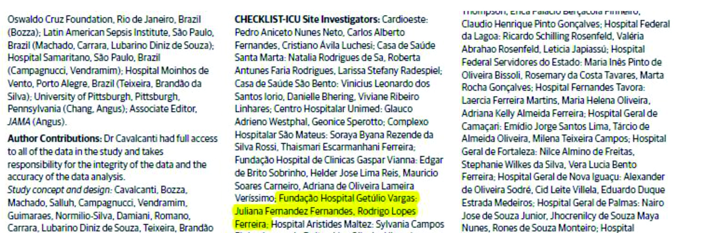“Foi um estudo de grande porte, bem conduzido, com boa adesão à intervenção nas UTIs do grupo experimental e excelente qualidade de dados. Demonstra uma grande capacidade para realização de pesquisa de qualidade entre os intensivistas brasileiros”, avaliou Dr. Alexandre Biasi Cavalcanti, do Comitê Diretivo do Estudo CHECKLIST-ICU, do H Cor De São Paulo.