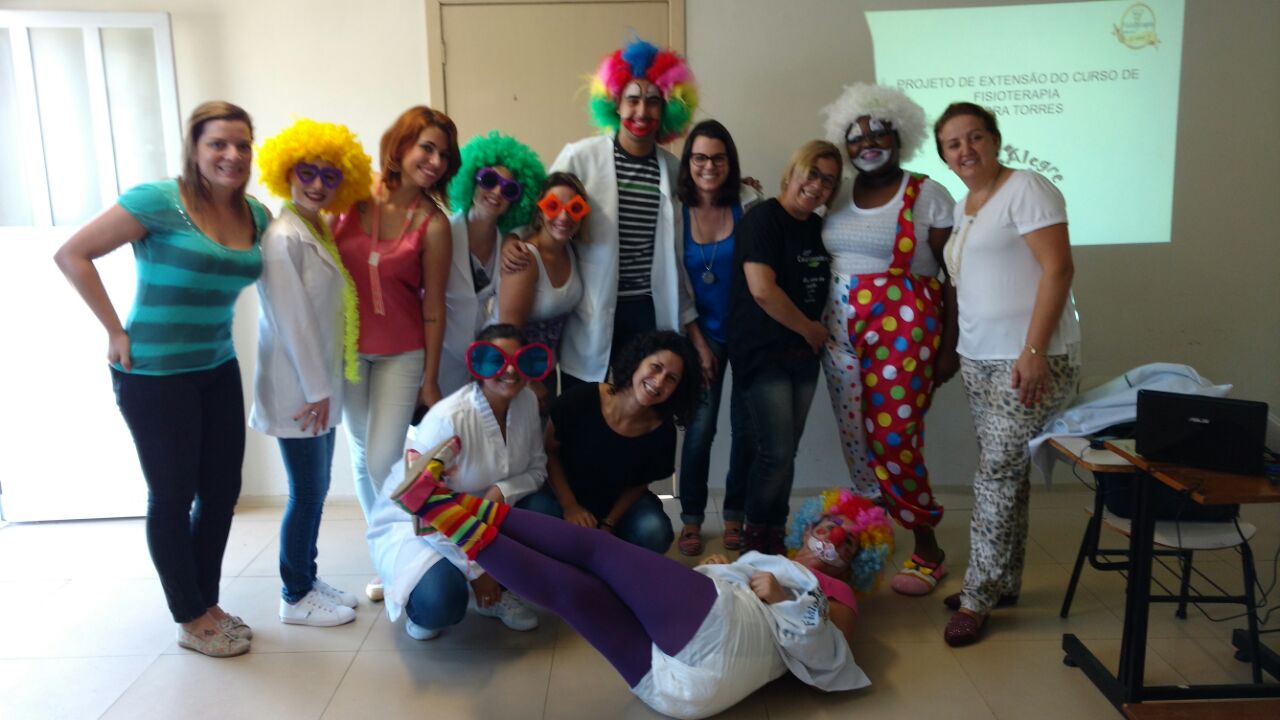 O Grupo Fisio Alegre, com vestimentas e ações divertidas, faz uma abordagem lúdica, interferindo positivamente no cotidiano dos usuários. Acompanharam a visita dos representantes da Universidade de Torres a fisioterapeuta Verônica Vargas e a professora Jucélia Güths.