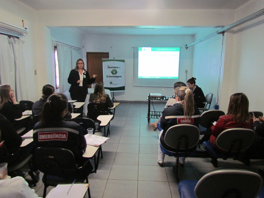 O tema seguinte, “Segurança do Paciente”, foi apresentado pela enfermeira Ana Paula Kleemann. Entre outras atrações, ela destacou uma linha do tempo da segurança em saúde, mostrando momentos que contribuíram para o aprimoramento das práticas e do funcionamento dos serviços.  Durante a palestra, Ana falou da RDC 36 (lei que rege sobre segurança do paciente), do plano de segurança (que cada hospital deve ter), de gestão de risco e de situações, ações, cuidados e reações que fazem parte do dia-a-dia do trabalhador da área de saúde.