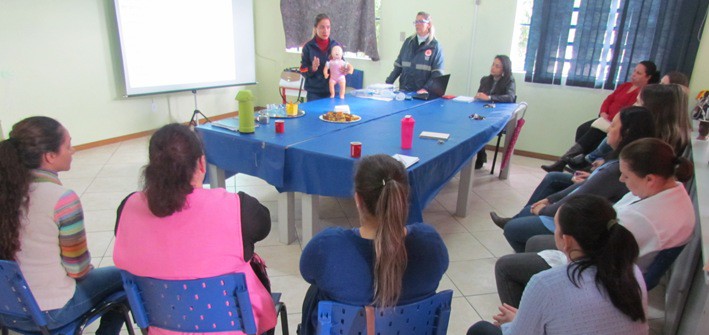 Cuidado, prevenção e primeiros socorros em crianças e adolescentes foram o enfoque da capacitação oferecida pelo Samu do Município, na manhã desta quarta-feira (6), aos trabalhadores e voluntários da Associação Casa de Passagem de Sapucaia do Sul (ACPSS), localizada no bairro Vargas. O tema foi ministrado pela coordenadora do Samu no Município, Flávia Motta, e a enfermeira Gisele Gomes. Elas explicaram o procedimento mais adequado para prestar atendimento aos jovens da Casa em situações de febre, diarreia, convulsão, quedas, ferimentos, afogamentos, queimaduras, envenenamento, mordida de animais, segurança no tráfego e outros acidentes.