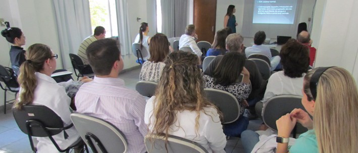 Durante mais um Grand Round, realizado na tarde desta sexta-feira (26), as médicas residentes Arisandra Girelli e Anne Gonzalez apresentaram um caso clínico em cirurgia geral aos demais integrantes do Programa de Residência Médica do Hospital Municipal Getúlio Vargas (HMGV). Elas abordaram um episódio envolvendo um divertículo de Meckel associado ao tratamento de tumor benigno de apêndice cecal.  A atividade teve a presença dos preceptores da Cirurgia Geral, Carlos Eduardo Teixeira; da Anestesiologia, Glênio Dressler Boelter; da Psiquiatria, Pedro Riter, e da Pediatria, Fábio Baiocco.