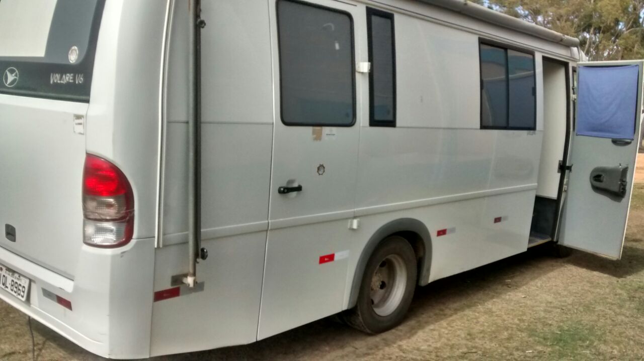 Nas fotos, imagens internas e externas do ônibus da Prefeitura.