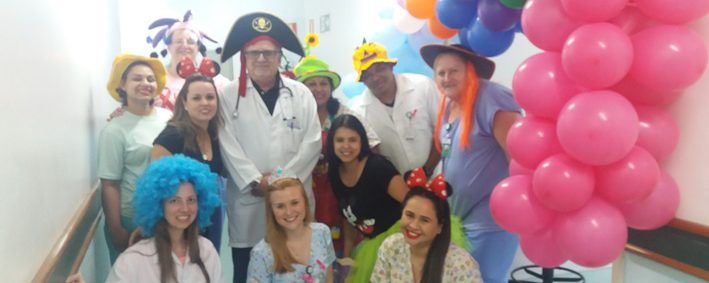 Trabalhadores do Hospital Municipal Getúlio Vargas (HMGV) entraram no clima do Dia das Crianças, na última quarta-feira (12), caracterizando-se de personagens infantis e levando alegria para a criançada. A Unidade Pediátrica, Observação Pediátrica e Sala de Acolhimento foram decoradas com temas infantis, deixando o espaço mais descontraído e agradável para as crianças internadas ou em atendimento. A atividade contou com a distribuição de presentes, doces, balões e sapatinhos de bebê. Médicos pediatras, enfermeiros, técnicos de enfermagem, pessoal da higienização e da portaria interagiram com as crianças, fazendo brincadeiras e contando histórias infantis. Os pequenos também tiveram a oportunidade de brincar na piscina de bolinhas. Neste dia, a equipe de nutrição do HMGV ofereceu um cardápio diferenciado com uma decoração animada nos pratos.