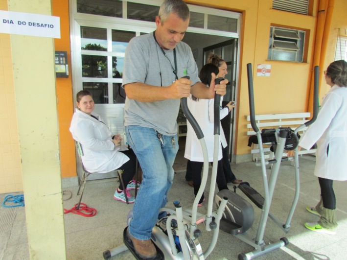 Outra atividade desenvolvida pelos estagiários é a ginástica laboral, que iniciou na área administrativa e depois se estendeu para a assistencial.