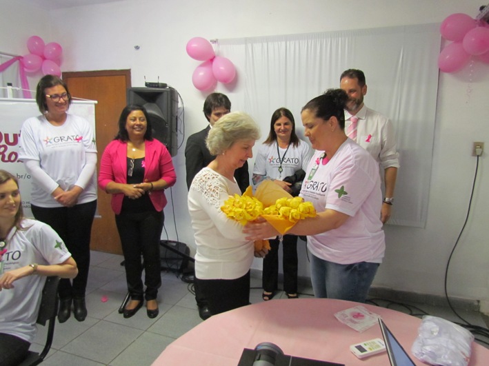 Na ocasião, a diretora de Atenção à Saúde da FHGV, Angelise Martins, comentou sobre a disponibilidade do Hospital para o agendamento mamografias e a importância do diagnóstico precoce do câncer de mama. “O Serviço de Imagem do HMGV tem realizado ações positivas que fazem a diferença. Pretendemos garantir suporte para as mulheres diagnosticadas com a doença e os grupos de apoio auxiliam neste processo”, manifestou. “Espero que o Novembro, seja tão azul, para os homens, como o Outubro está sendo rosa para as mulheres”, completou a diretora referindo-se ao Novembro Azul de prevenção ao câncer de próstata.