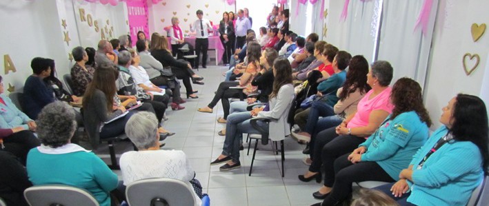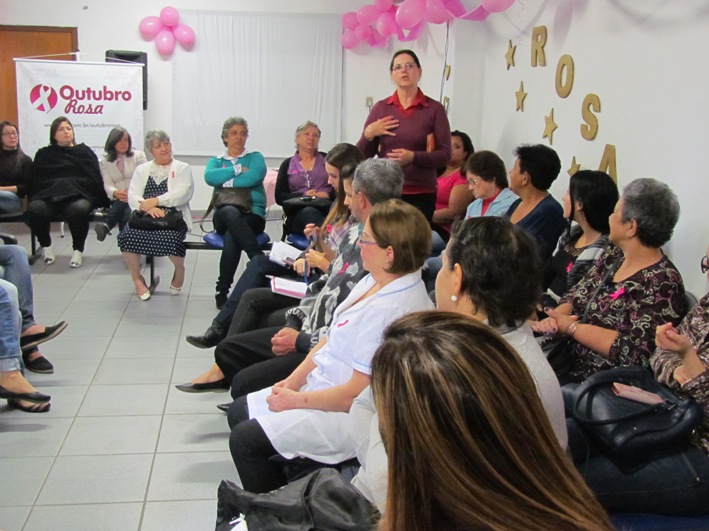 Colo, carinho, informação técnica e apoio da família é tudo que as pessoas precisam no momento de receber um diagnóstico de câncer de mama. Este foi o resumo das manifestações de dezenas de mulheres, que lotaram o auditório da Fundação Hospitalar Getúlio Vargas (FHGV), na manhã desta terça-feira (4), durante a abertura do Outubro Rosa. A atividade reuniu usuárias que estão ou já fizeram tratamento de câncer de mama no Hospital Municipal Getúlio Vargas (HMGV) de Sapucaia do Sul, seus familiares, trabalhadores da instituição e da rede básica de saúde do Município. Durante o evento, foi apresentado do Grupo de Apoio ao Tratamento Oncológico (GRATO) do HMGV, formado por uma equipe multiprofissional.