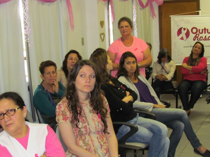 Durante o evento, a psicóloga Maria Estelita Gil e o médico do Serviço de Imagem do HMGV, Guilherme Cecin, conduziram uma roda de conversa sobre “Apoio Psicológico a Pacientes com Câncer de Mama”. A psicóloga, que há 30 anos trabalha com apoio ao tratamento do câncer de mama, relatou que ela e sua mãe enfrentaram esta doença. “Temos que abandonar o medo do desconhecido, buscar conhecimento e manter o pensamento positivo, pois o câncer de mama tem tratamento e cura”, salientou.