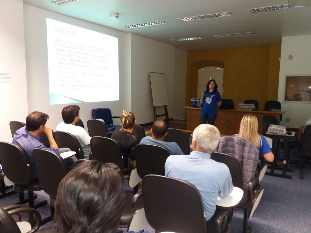 Encerrando as atividades do Novembro Azul, o Hospital Municipal de São José do Norte promoveu palestras realizadas no Ministério Público sobre Política Nacional de Atenção Integral à Saúde do Homem. O evento aconteceu em dois momentos: no dia 18 de novembro, a enfermeira Aryane realizou uma capacitação sobre o tema. No dia 23, a psicóloga Adriana Perez e a assistente social Laisla, ambas da Associação de Apoio a Pessoas com Câncer (Aapecan), palestraram sobre Prevenção à Saúde do Homem e Câncer de Próstata.