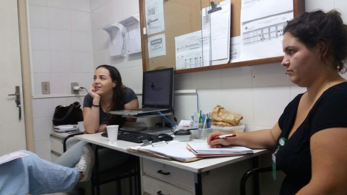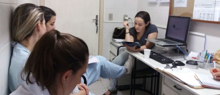 Integrantes do Programa de Capacitação para Formandos de Fisioterapia do Hospital Municipal Getúlio Vargas (HMGV) participaram de uma discussão sobre artigos científicos referentes à ventilação mecânica, na tarde desta quinta-feira (2). O tema foi ministrado pela preceptora Isabella Lomonaco. São 120h mês de treinamento, incluindo aula teórica de ventilação mecânica, avaliação de exames laboratoriais e de imagens e aulas relacionadas a doenças comuns de internação, além de acompanhamento prático. Tendo como preceptor o fisioterapeuta responsável pelo HMGV, Rodrigo Ferreira, o Programa de Capacitação conta com estudantes da Unisinos, Feevale e PUC. A turma acompanha a equipe de fisioterapia do HMGV nos atendimentos em todas as áreas, principalmente na UTI e na Emergência.