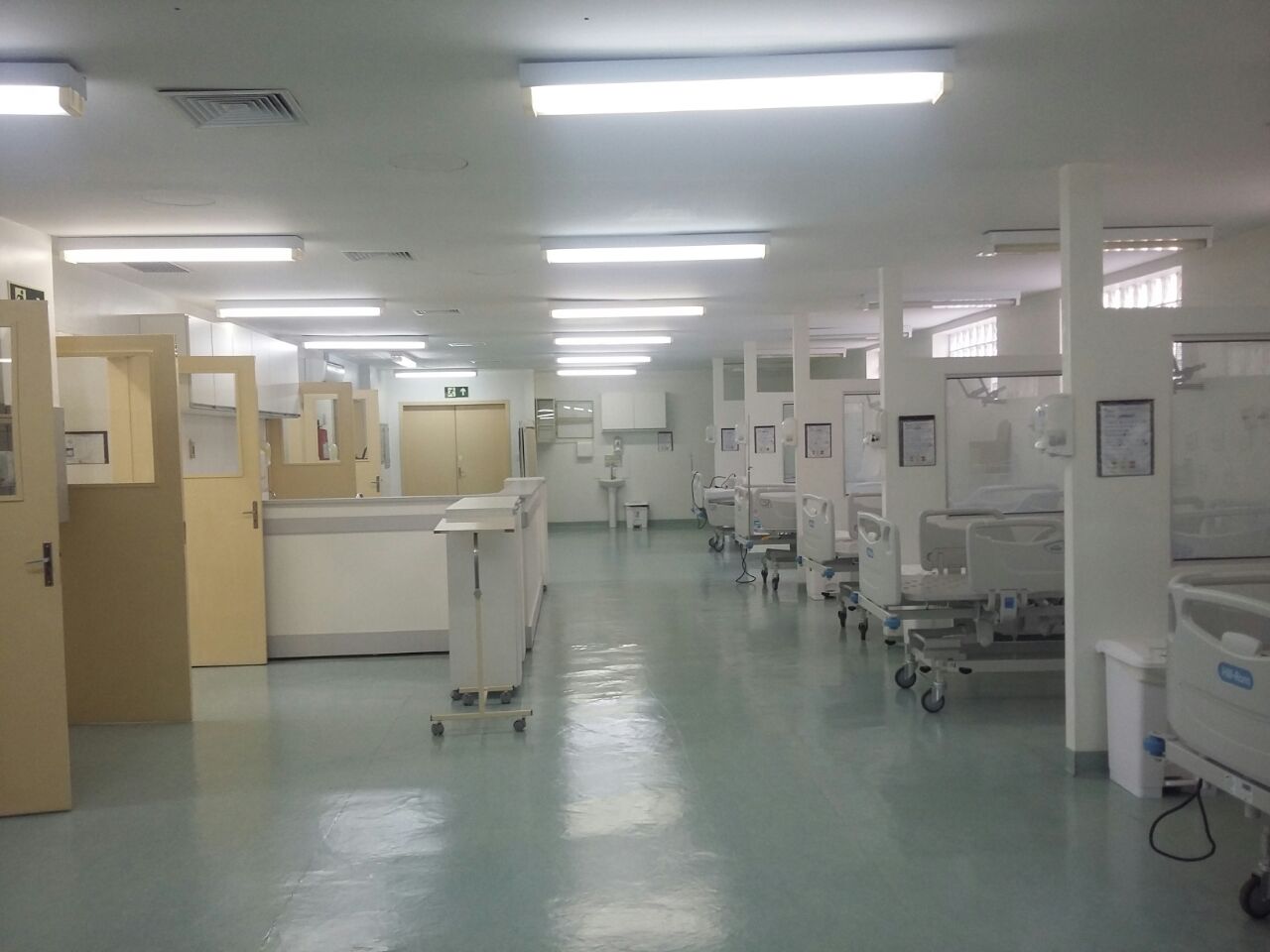 A limpeza terminal dos setores e unidades do Hospital Municipal Getúlio Vargas ocorre de forma contínua e se completa a cada 30 dias. Dando sequência a esse processo, nesta quarta-feira (1º) foi concluída a demanda na Unidade de Tratamento Intensivo. Durante dois dias, os usuários foram deslocados para a área da UCIA (Unidade de Cuidados Intermediários Adultos), permitindo que os trabalhadores da Higienização cuidassem de forma detalhada da limpeza e do enceramento de cada espaço da UTI, incluindo pisos, paredes, luminárias, mobiliários, tetos e janelas.