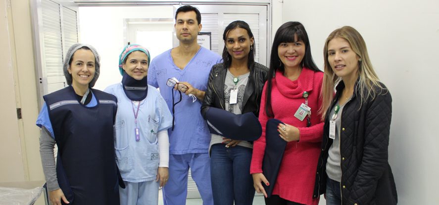 Na tarde desta quinta-feira (27), o setor de Radiologia do Hospital Municipal Getúlio Vargas recebeu da equipe da Saúde do Trabalhador da Fundação novos equipamentos de proteção individual. Foram entregues a chefe do Bloco Cirúrgico, Neilane Rosito, sete óculos plumbíferos, dois aventais cirúrgicos de borracha, duas luvas com proteção de chumbo e dois protetores de tireóide. As novidades poderão ser usadas, sobretudo, no manuseio do recém-inaugurado angiógrafo, que permite a obtenção de imagens do sistema vascular.