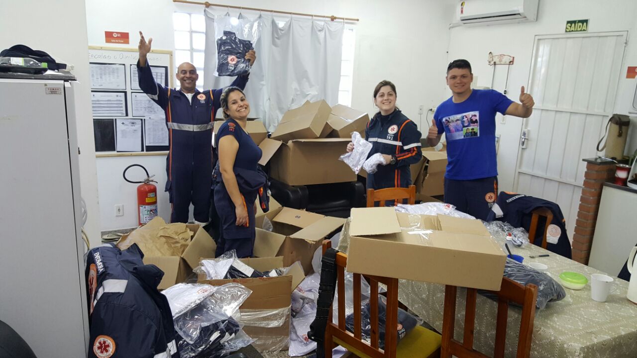 A equipe do Serviço de Atendimento Médico de Urgência de Sapucaia do Sul já está utilizando os novos uniformes, adquiridos no início do mês de agosto. Segundo a coordenadora do SAMU, Letícia Santomé, são cerca de 35 kits compostos de bota de resgate, macacão padrão, com tarjeta de identificação, duas camisetas, um boné e óculos de EPI. Letícia explica que os uniformes correspondem às exigências do Ministério da Saúde e são de fundamental importância para o desenvolvimento de um trabalho seguro no atendimento de resgate.