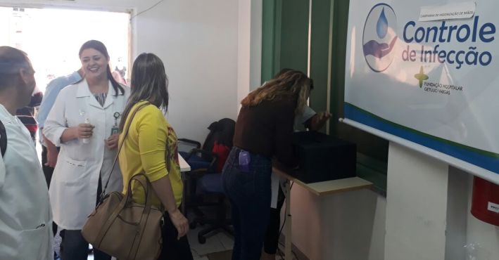 Por iniciativa do Serviço de Controle de Infecção Hospitalar (SCIH) da Fundação Hospitalar Getúlio Vargas, foi realizada mais uma Campanha de Higienização de Mãos voltada aos trabalhadores da instituição. Conforme a enfermeira do SCIH, Ana Monteles, a ação teve o objetivo de conscientizar os trabalhadores sobre a importância de higienizar as mãos, a fim de reduzir a transmissão de infecções proporcionando segurança para trabalhadores e usuários dos serviços de saúde.