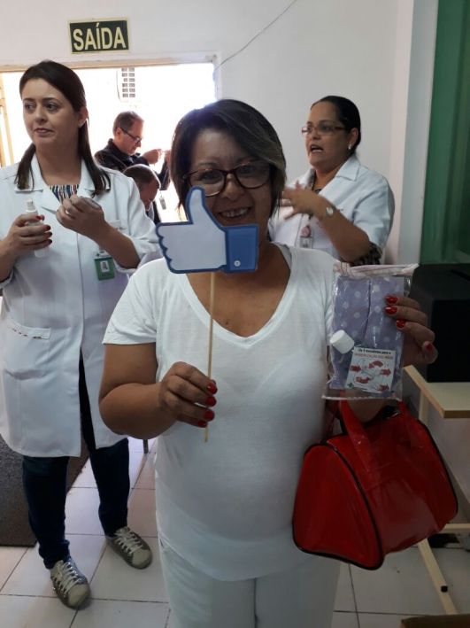 “Com a prática, foi possível perceber algumas falhas na higienização, pois as regiões iluminadas representam as áreas não higienizadas, mesmo assim podemos considerar os resultados da dinâmica positivos”, avaliou a enfermeira. “Foi um momento propício para conscientização dos trabalhadores. A higienização das mãos é fundamental no cuidado com os pacientes e faz parte de uma prática de saúde ocupacional.”