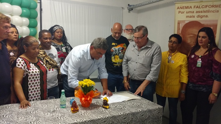 Depois do ato de assinatura da Portaria, a presidente da Associação Gaúcha de Doença Falciforme, Neusa Carvalho, fez uma palestra sobre “Doença Falciforme e Controle Social”. A anemia falciforme afeta em maioria as pessoas negras. Ela salientou a importância do teste do pezinho e do exame eletroforético, oferecido pelo SUS para diagnosticar esta doença.