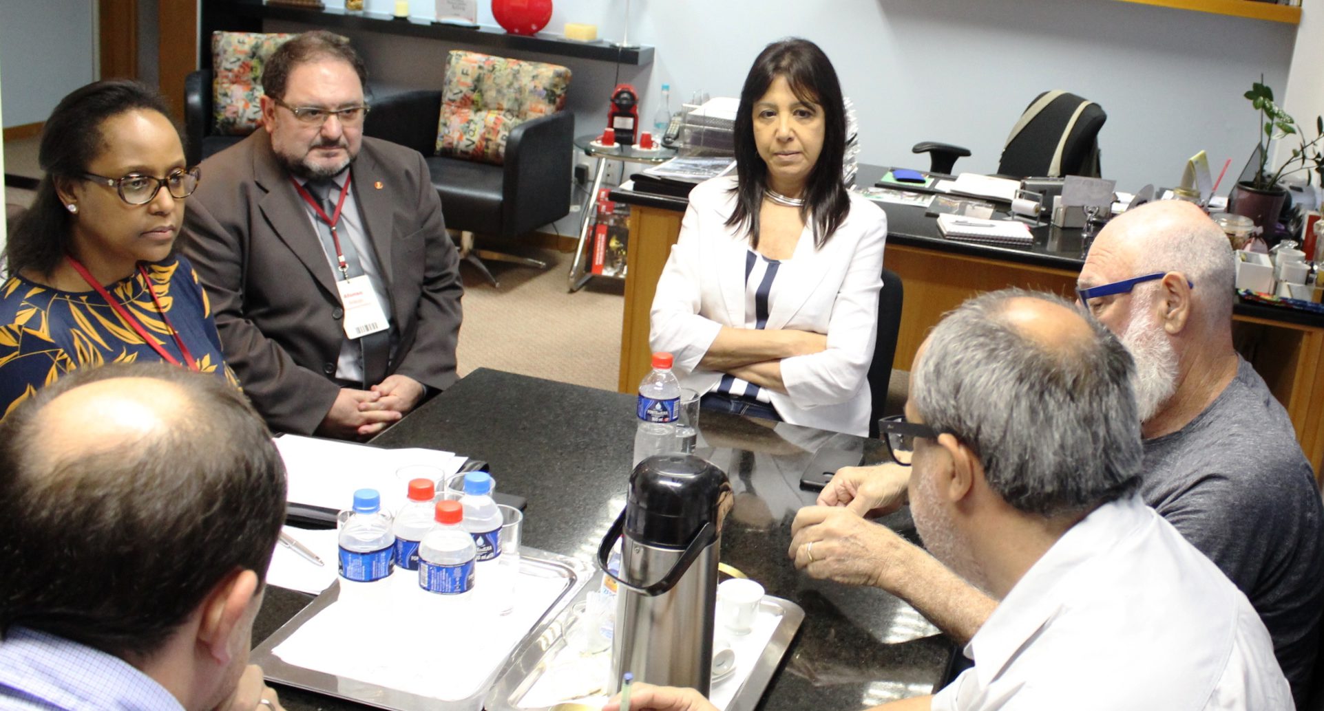 O diretor geral da FHGV, Juarez Verba, acompanhado do diretor de Gestão e Desenvolvimento de Pessoas, Alex Borba dos Santos, e do diretor Administrativo e Financeiro, Leandro Barcellos, esteve reunido na quinta-feira (16) com a direção do Sindicato Médico do Rio Grande do Sul (Simers). Em pauta, o seguimento das negociações do acordo coletivo da categoria e a possibilidade de se estabelecerem cláusulas em comum para todas as cidades onde a Fundação atua, respeitando as especificidades locais. Pelo Simers, estiveram presentes a vice-presidente Maria Rita de Assis Brasil, a assessora jurídica Denise Teixeira e o assessor Afonso Comba de Araújo Filho.