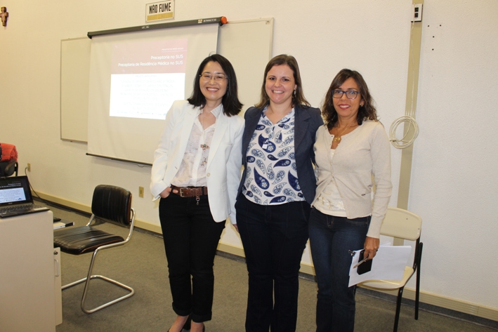 As médicas Adriana Trein (Fundação Hospitalar Getúlio Vargas), Klegen Bastos e Lúcia Takimi (Secretaria de Saúde de Sapucaia do Sul) apresentaram, na manhã desta quarta-feira (22), o Projeto Aplicativo do Curso de Preceptoria Médica no SUS. O Curso é promovido pelo Hospital Sírio Libanês de Ensino e Pesquisa e o Ministério da Saúde com o apoio do Conselho Nacional de Secretários de Saúde (CONASS), do Conselho Nacional de Secretarias Municipais de Saúde (CONASEMS), da Secretaria Estadual de Saúde e da ESP.