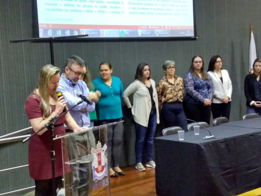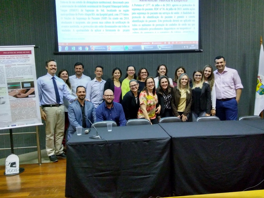 Trabalhadores da Fundação Hospitalar Getúlio Vargas participaram na terça-feira (5) do evento de conclusão do Curso de Especialização em Qualidade e Segurança no Cuidado ao Paciente, proposto pelo Ministério da Saúde e realizado pelo Instituto de Ensino e Pesquisa do Hospital Sírio Libanês. No evento, que aconteceu na PUCRS, os profissionais da Fundação apresentaram seus Projetos Aplicativos, conforme os grupos a que estavam vinculados.