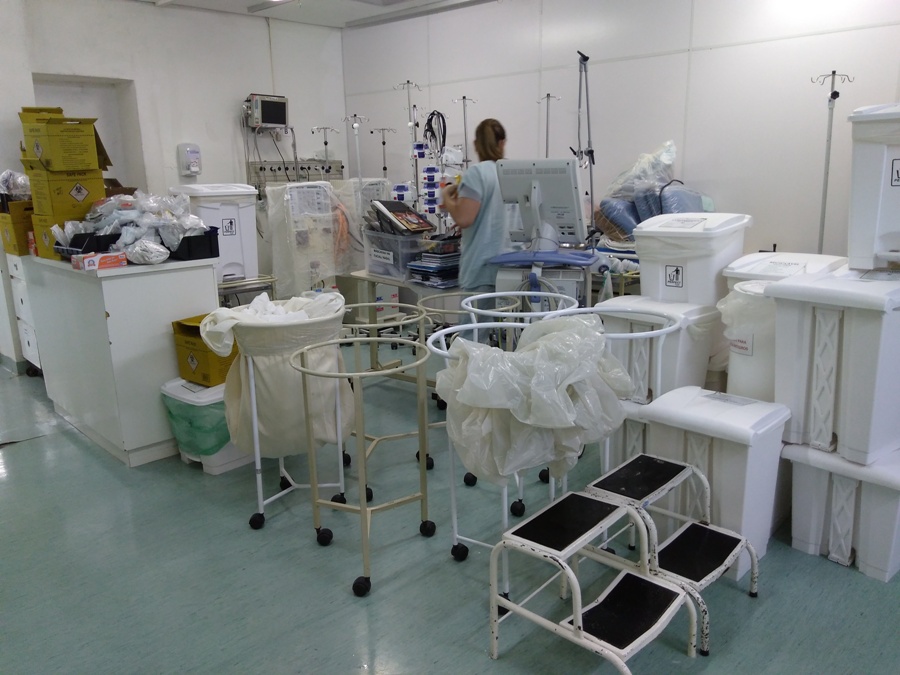 Quinta-feira (7), às 14 horas, começou a limpeza terminal da UTI (Unidade de Tratamento Intensivo) do Hospital Municipal Getúlio Vargas. Com a participação de equipes de vários setores do HMGV (manutenção, higienização, controle de infecção, enfermagem, fisioterapia, entre outros), houve um processo de desinfecção em cada canto, piso, parede e material que compõem a Unidade. Os pacientes, enquanto isso, foram transferidos para a UCIA (Unidade de Cuidados Intermediários Adulto).
