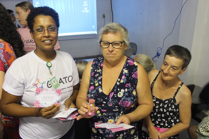 Em celebração ao Mês da Mulher, as participantes receberam uma lembrancinha feita pela equipe multiprofissional (formada por médico, enfermeiro, farmacêutico, nutricionista, psicólogo, assistente social e trabalhadores do Setor de Imagem) e a “Mama do Amor”, que são próteses mamárias externas, feitas de alpiste e meias de poliamida. Os encontros do GRATO acontecem mensalmente.