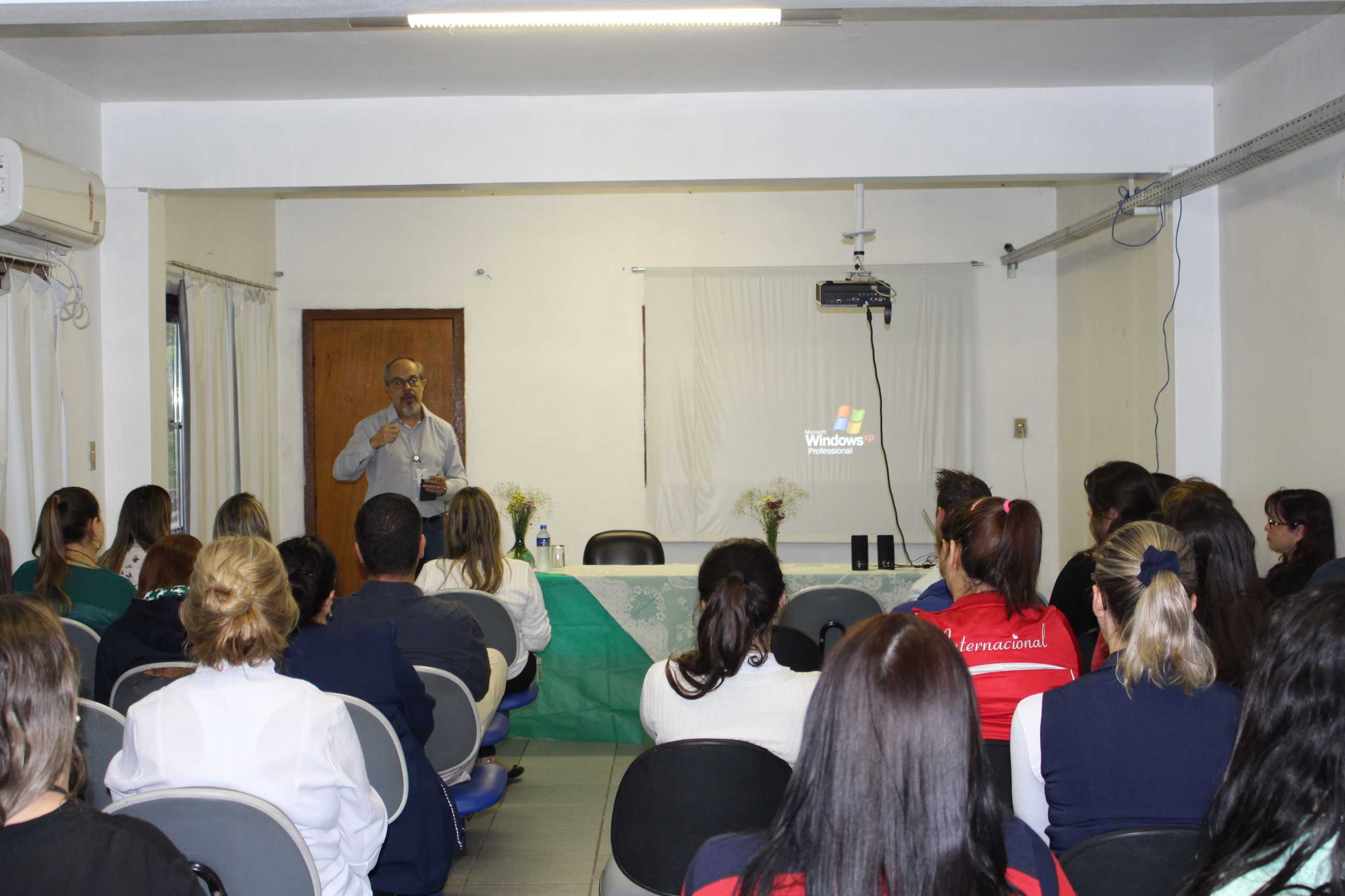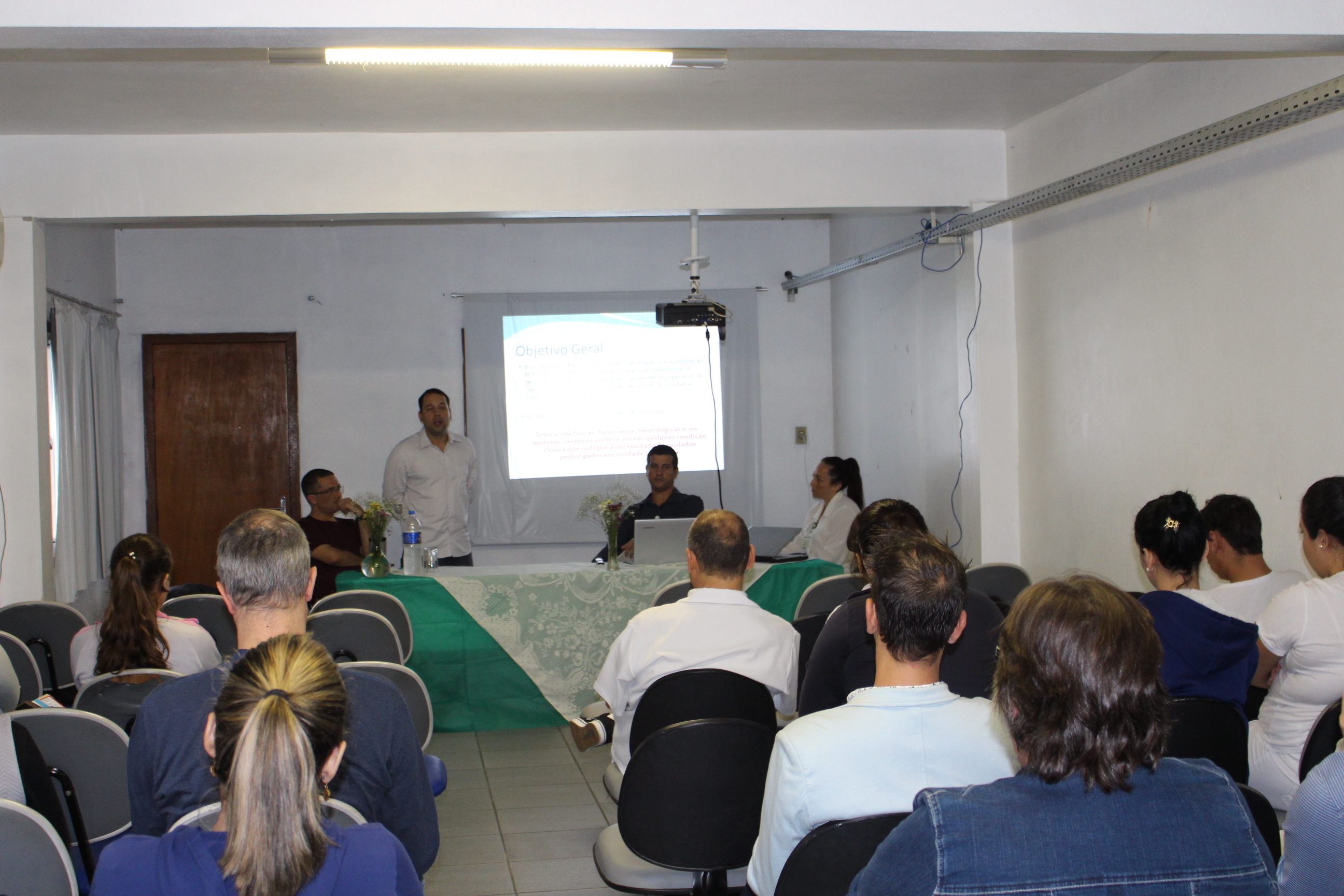 Cuidar na essência: valorização em todos os ciclos da vida. Esse é o lema da V Semana da Enfermagem do HMGV, que teve sua abertura na terça-feira (15). O evento, realizado no auditório da sede administrativa da FHGV, trouxe uma palestra com o Grupo de Orientação de Cuidados Pós Alta (GOCA) sobre seus trabalhos e orientações aos demais enfermeiros presentes. Antes disso, Loredi Becker, diretora do HMGV, falou sobre a importância do enfermeiro na reabilitação física e emocional dos usuários, e Tiago Plá Pereira, responsável técnico de enfermagem, refletiu sobre a escolha da profissão, valorização do funcionário e trabalho em equipe.