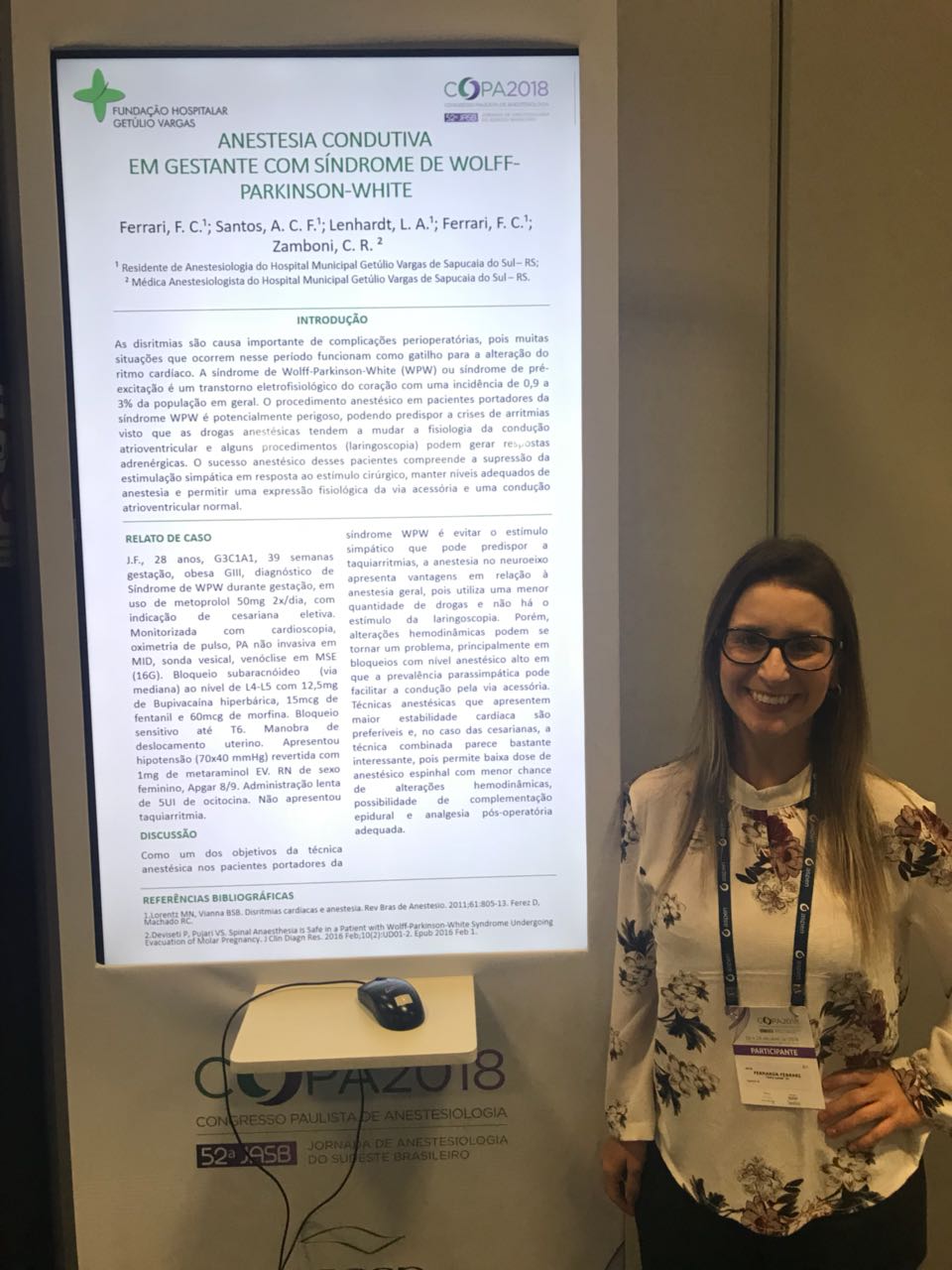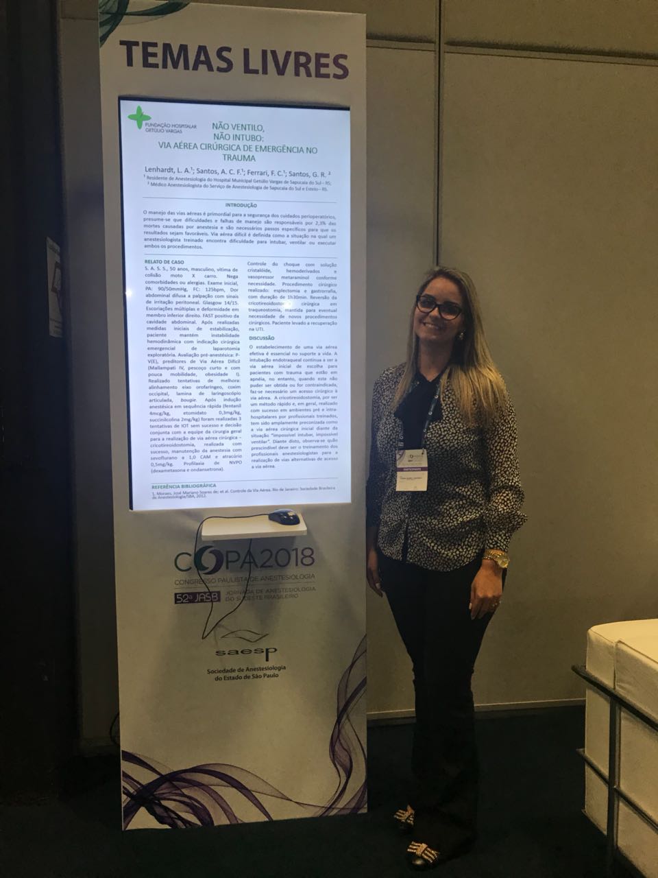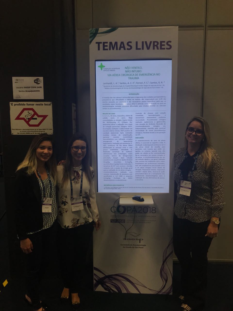 O Programa de Residência Médica do Hospital Municipal Getúlio Vargas (HMGV) garantiu a aprovação de três trabalhos científicos durante o Congresso Paulista de Anestesiologia, realizado entre os dias 26 e 29 de abril, em São Paulo. Os estudos foram produzidos pelas residentes de Anestesiologia do HMGV, Ana Catarina Ferreira, Luana Adamy e Fernanda Ferrari com os temas “Anestesia consultiva em Gestante com síndrome de Wolf Parkinson-White”, “Edema Agudo Pulmonar por pressão negativa pós-extubação”, “Anestesia na Síndrome de Silver- Russel com Manejo de via aérea difícil: relato de caso”.