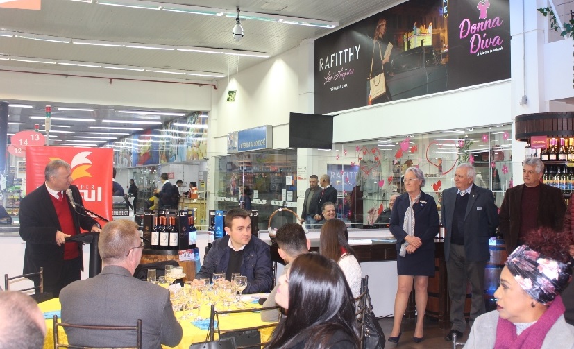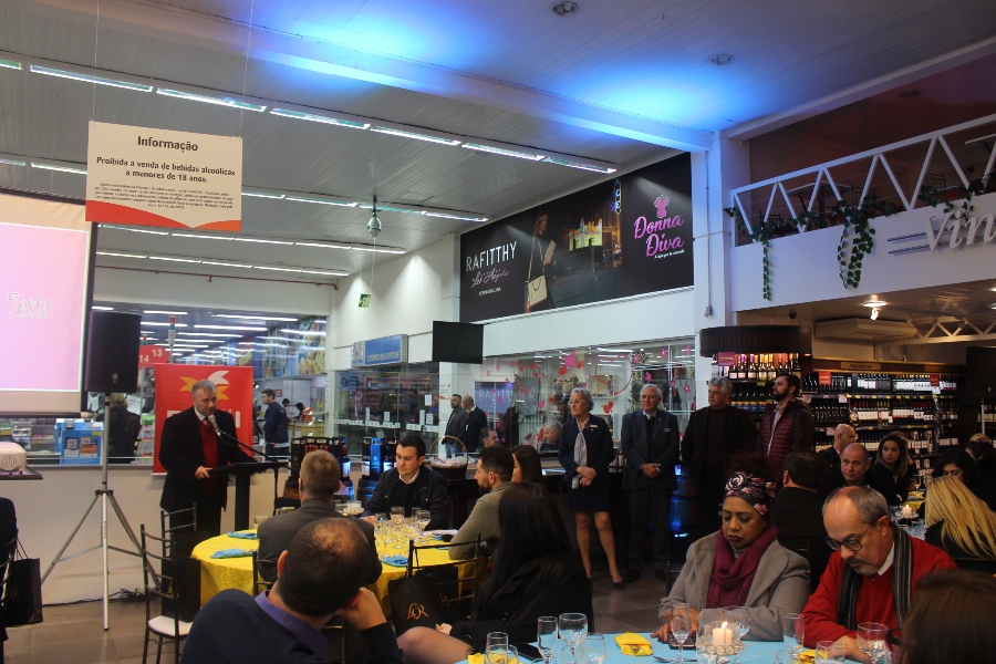 Uma parceria entre a FHGV e o Rotary Club de Sapucaia do Sul resultou em um jantar com degustação de vinhos na noite da última quinta-feira (14). O objetivo do evento, que ocorreu no Supermercado Rissul, foi arrecadar fundos para a compra de poltronas a serem utilizadas por acompanhantes de pacientes no HMGV. Para atingir a meta de 40 poltronas, o Rotary realizou venda de convites para o jantar.