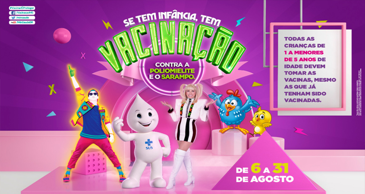 A partir desta segunda-feira (6), está aberta a Campanha Nacional Contra a Poliomelite e o Sarampo. Devem participar desta campanha as crianças com idade entre 12 meses e quatro anos e 11 meses e 29 dias. Todo familiar com crianças nesta faixa etária, mesmo que com o calendário de vacinação em dia, deve procurar a Unidade Básica de Saúde (UBS) com sala de vacina mais próxima de sua residência, levando a caderneta de vacinação da criança para avaliação e registro.