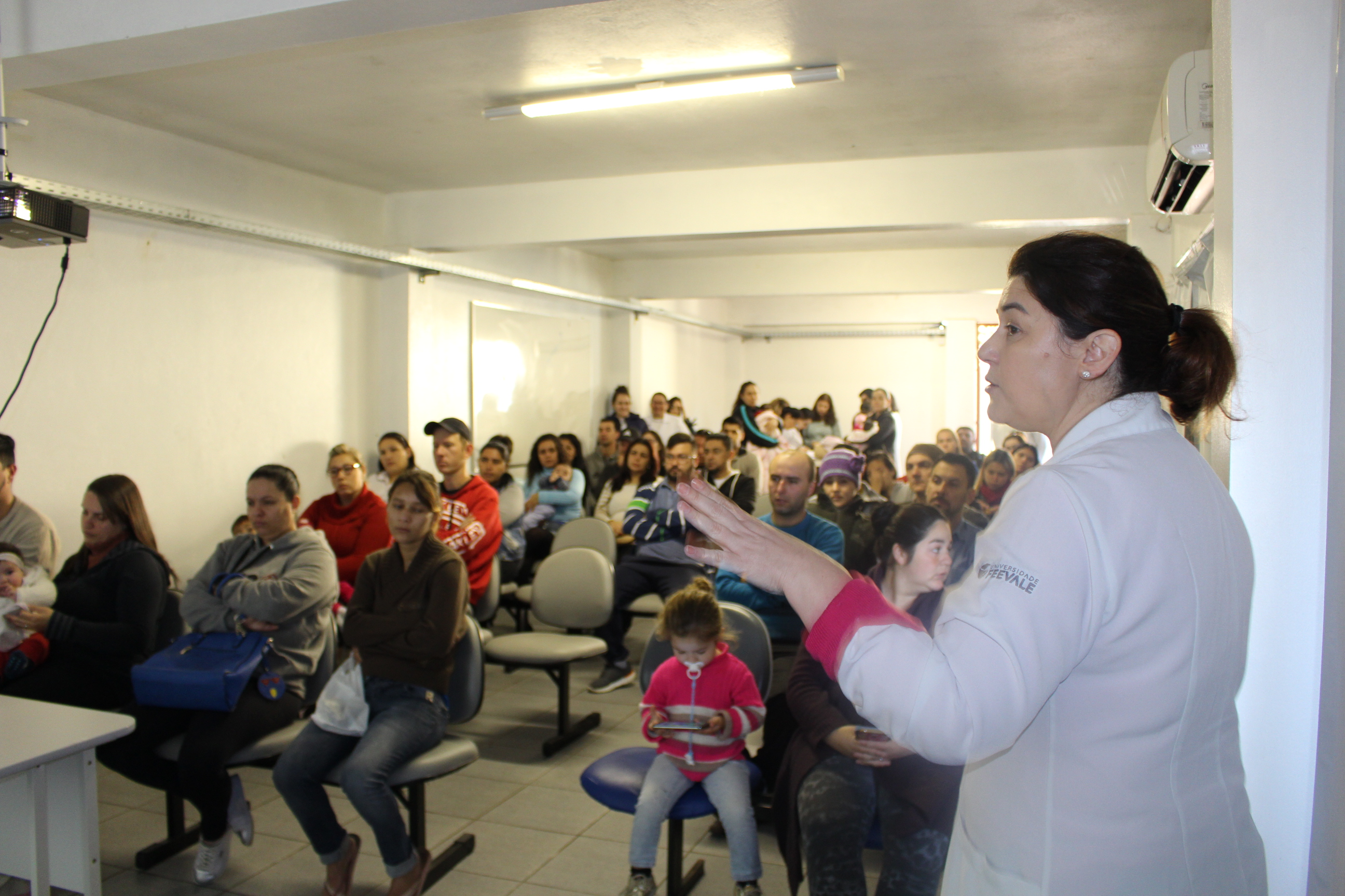 Na manhã desta terça-feira (14), o auditório da FHGV recebeu mais uma reunião de planejamento familiar, realizada pela Clínica de Saúde da Mulher (Clisam). Na ocasião, homens e mulheres puderam fazer cadastro para o processo de laqueadura e vasectomia, oferecido gratuitamente pelo SUS. Após, Maristela Peixoto, enfermeira, professora universitária da Feevale e membro da Clisam, palestrou sobre o funcionamento destes procedimentos, transmissão de doenças sexualmente transmissíveis e métodos anticoncepcionais.