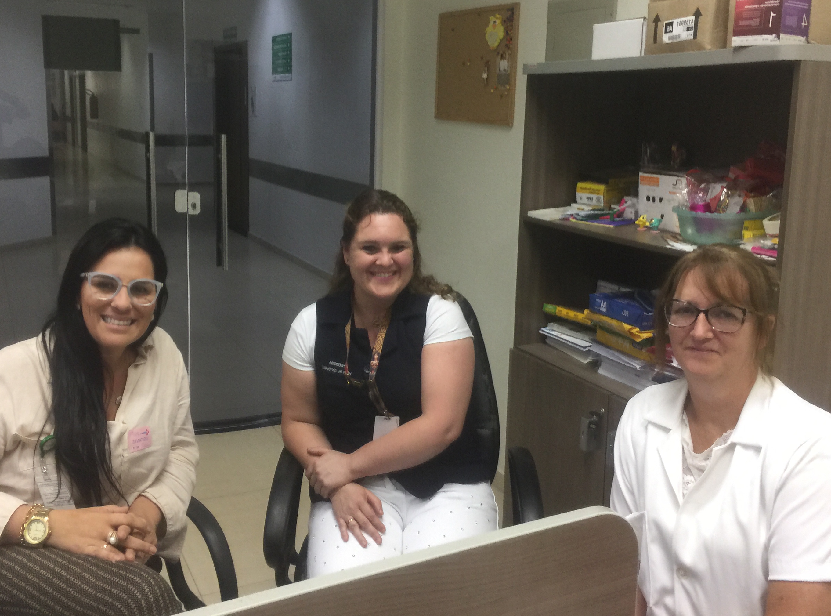 Participaram do primeiro encontro de trabalho a enfermeira Fernanda Estrela e Carla Muller, responsáveis pela gestão acadêmica dos programas no Hospital Centenário.