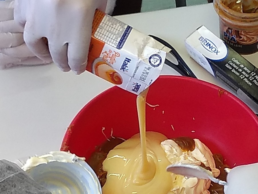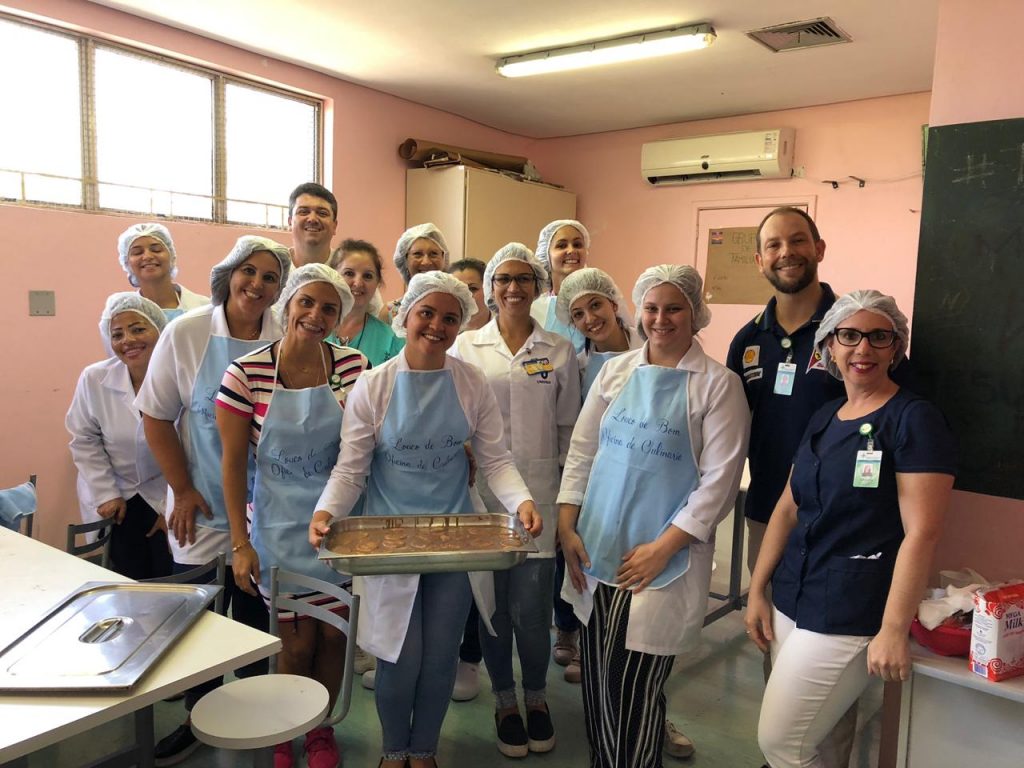 As atividades da Oficina de Culinária Louco de Bom, realizadas na Unidade de Saúde Mental do HMGV, sempre movimentam positivamente pacientes e profissionais. Nesta quarta-feira (3), não foi diferente. Com a presença de estagiários de enfermagem (estudantes da Unisinos), mais a equipe de Nutrição do Hospital e os trabalhadores da USM, os pacientes fizeram uma torta de bolacha com nata e doce de leite.