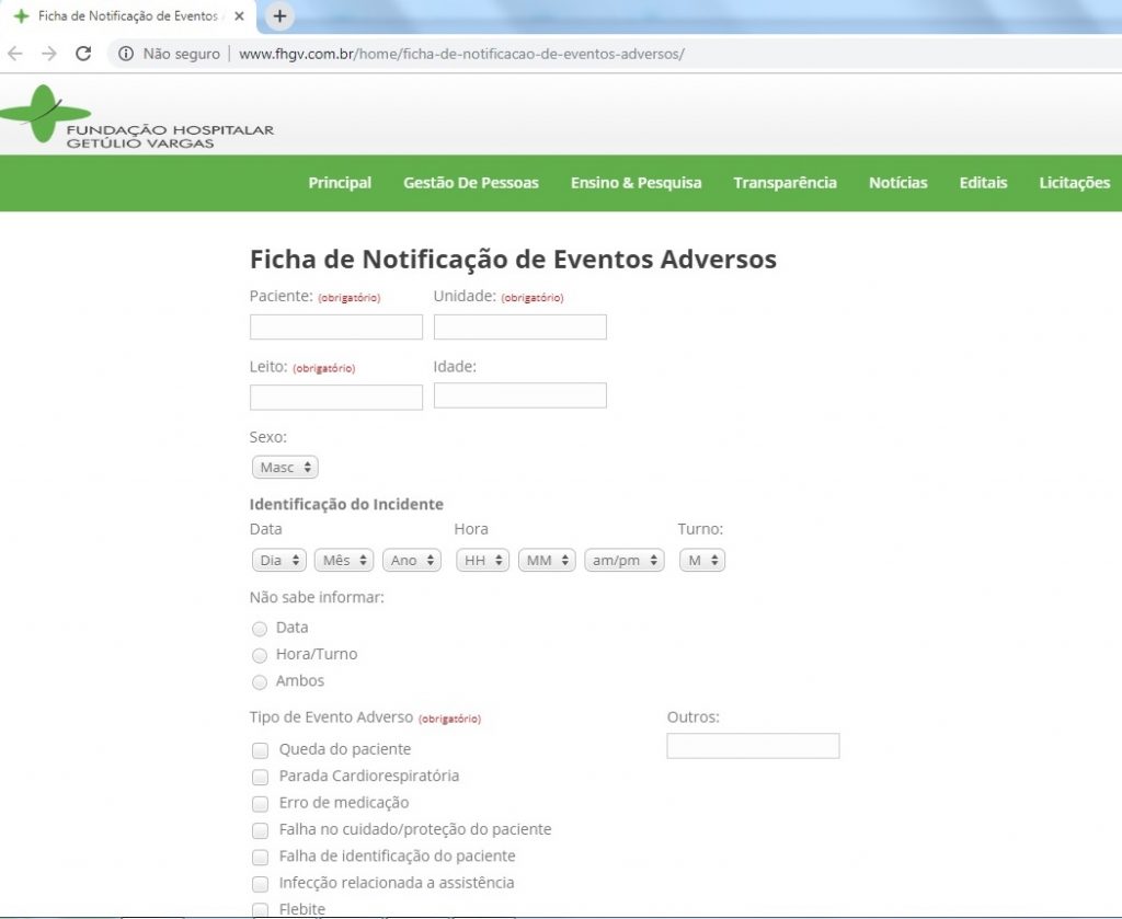 O evento adverso é qualquer ocorrência desfavorável médica que prejudica ou possa vir a causar danos ao paciente, pois a troca do nome, por exemplo, é um evento adverso que não está ligado ao plano terapêutico. Há 30 dias, o Hospital Municipal Getúlio Vargas (HMGV) administrado pela Fundação Hospitalar Getúlio Vargas informatizou o registro do evento adverso. Esse tema vincula-se ao Programa Nacional de Segurança do Paciente (PNSP) criado pelo Ministério da Saúde em 2013.