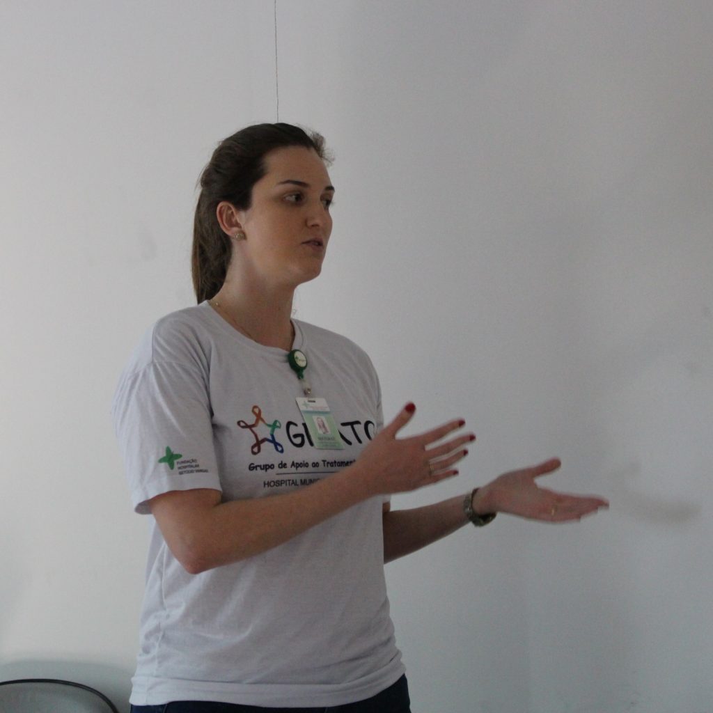 A tarde desta terça-feira (6) foi marcada por mais uma reunião do Grupo de Apoio ao Tratamento Oncológico (GRATO) da FHGV. Desta vez as pacientes participaram de uma oficina sobre estratégias para driblar os sintomas do tratamento através da nutrição, ministrada por Mariane Damásio, nutricionista do HMGV. Enquanto aprendiam sobre evitar enjoos e vômitos, contaminações e diversas outras formas de conservar a nutrição como aliada ao tratamento, as pacientes puderam degustar exemplos de lanches que podem ser produzidos.