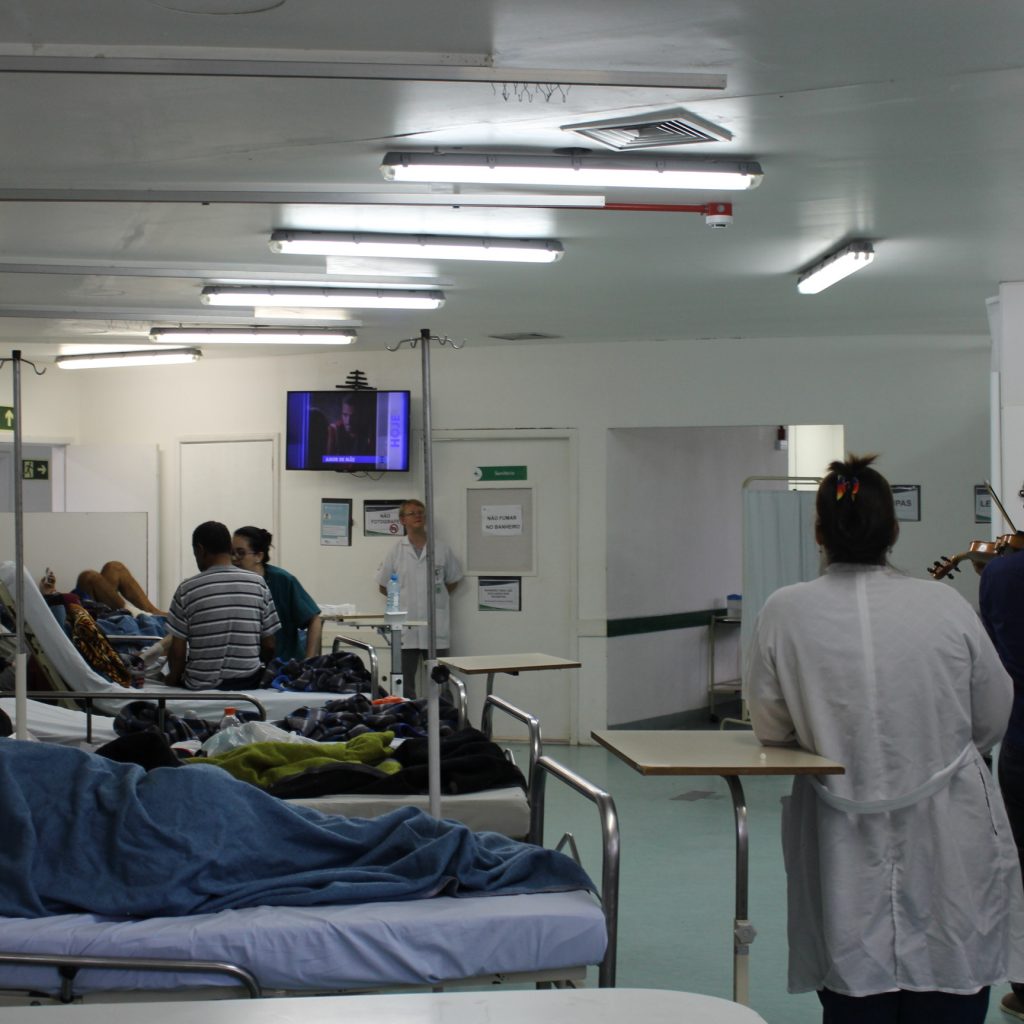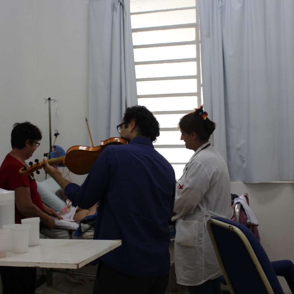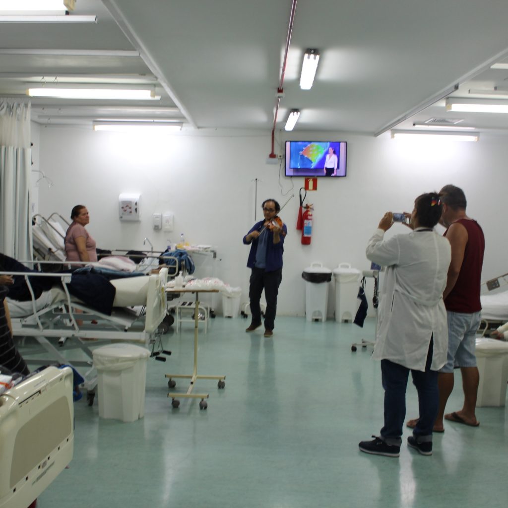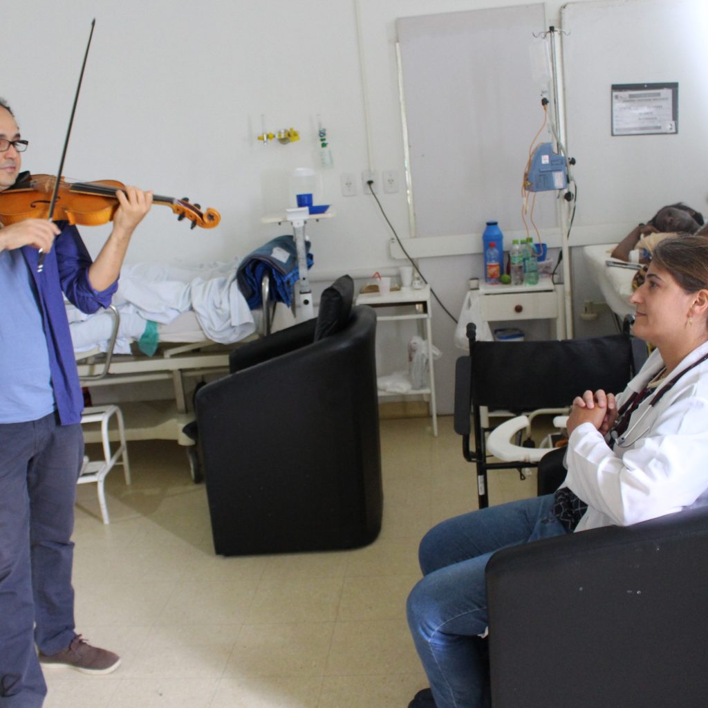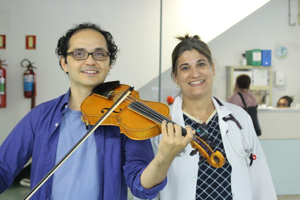 Os instantes musicais foram especiais para todos que puderam escutar o violinista seja usuário do Sistema Único de Saúde ou trabalhador da área de saúde. Com esse estímulo artístico e cultural, Clarissa fez a visita médica para verificar o estado dos pacientes. “Sempre achei muito bacana o trabalho de pessoas que fazem algum tipo de atividade para entreter os que estão internados. Eu acredito muito no poder da música como uma forma de transformação de trazer as lembranças e que as pessoas consigam transcender. Já trouxe o violonista em função da alta de um outro paciente muito querido internado de maio a setembro do ano passado. É uma questão além do físico porque o emocional é muito importante. Não se trata apenas de uma alta em si porque é uma maneira de celebrar e proporcionar alegria aos que continuam internados”, revela Clarissa que é médica especialista em Medicina Interna e concursada na Fundação Hospitalar Getúlio Vargas desde fevereiro do ano passado.