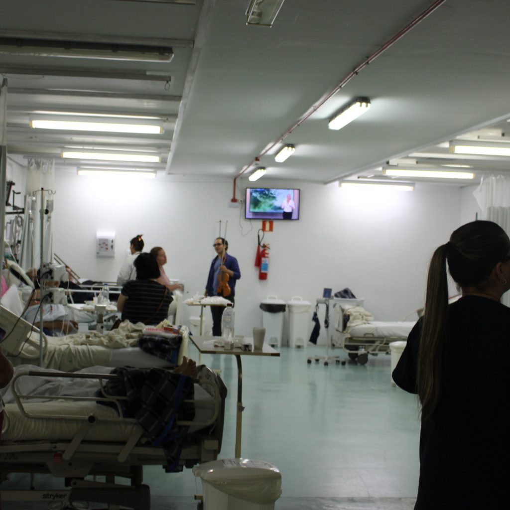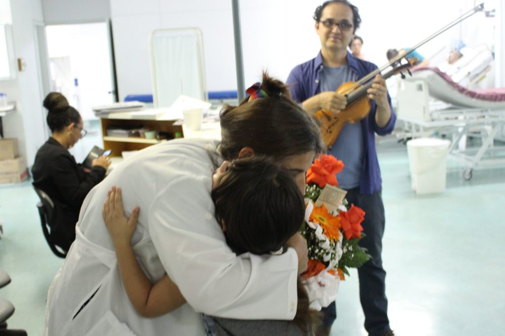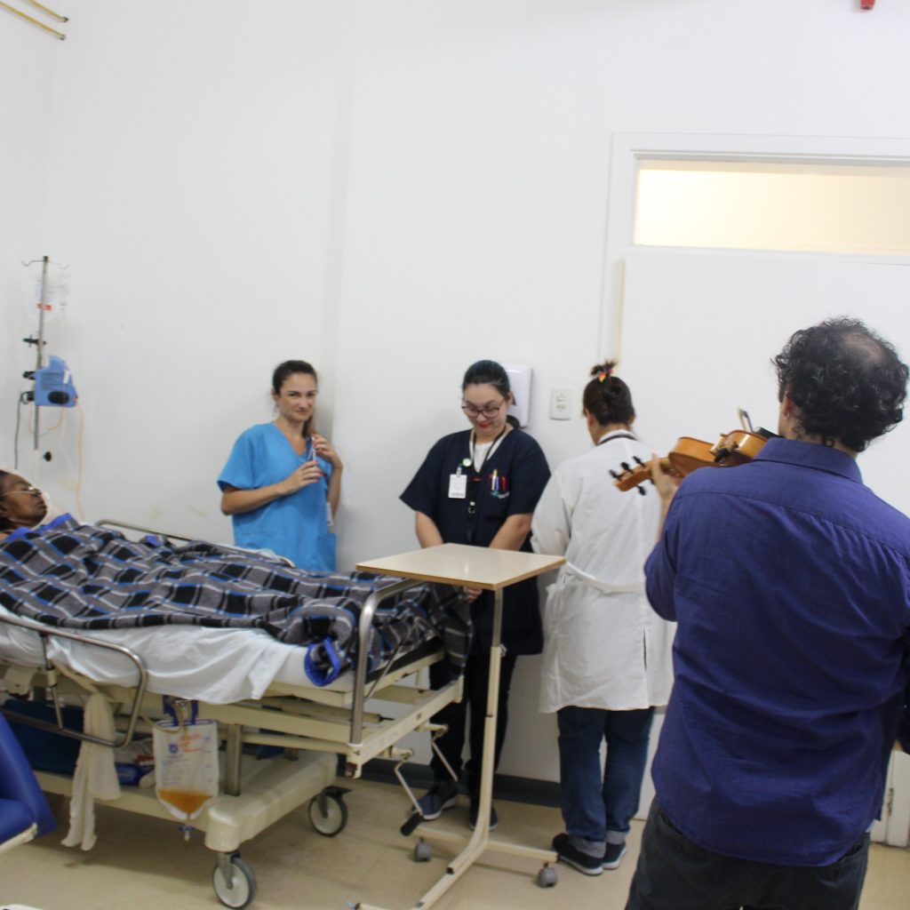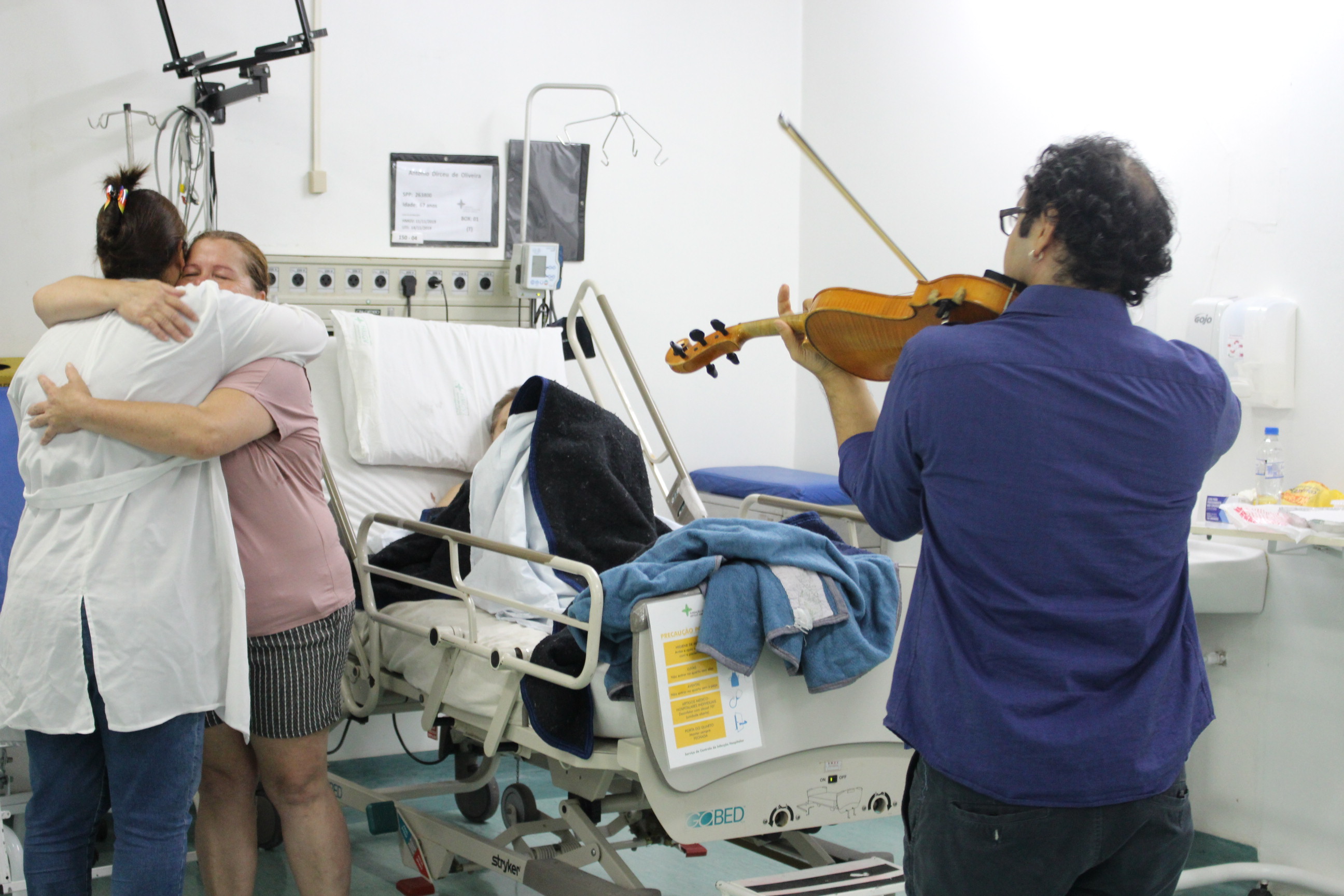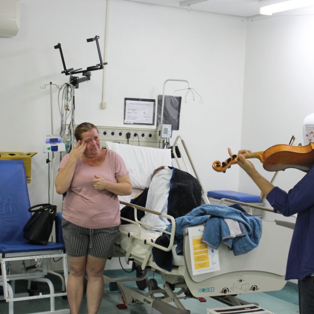 O último dia de uma pessoa hospitalizada certamente é marcante tanto para ela quanto para familiares. Em vários casos, as internações são prolongadas e a alta gera um momento de celebração. Desde novembro no Hospital Municipal Getúlio Vargas (HMGV), o tio de 67 anos da sapucaiense Adriana de Oliveira ouviu Música Popular Brasileira (MPB) ao som de violino antes de deixar o leito na Unidade de Cuidados Intermediários Adulto (UCIA).