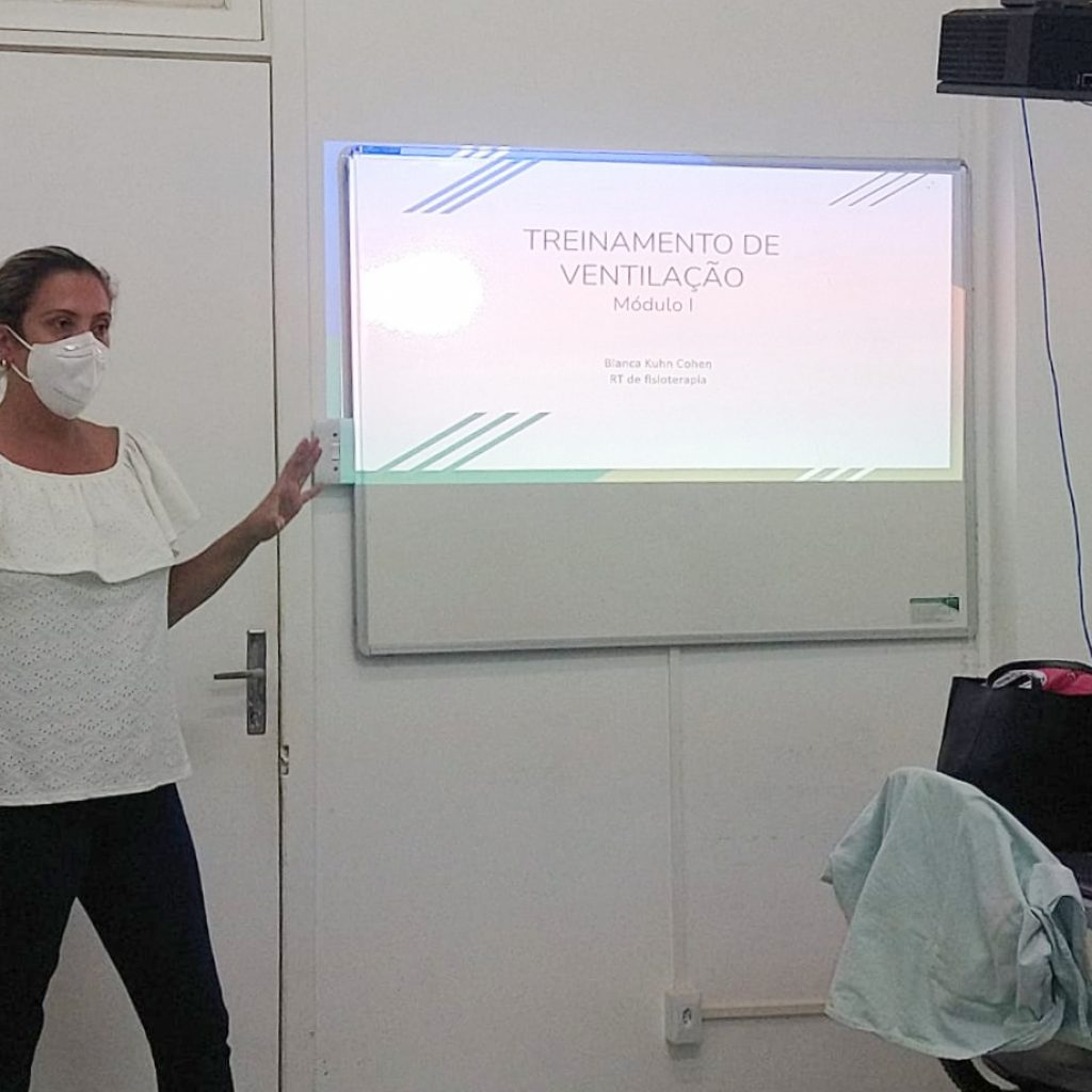 A fisioterapeuta, Bianca Kuhn Cohen, explica que o objetivo da instrução é capacitar, principalmente, os novos trabalhadores do HMGV e atualizar os antigos. “A partir do módulo vão surgindo dúvidas e sugestões para novos treinamentos. O curso é básico para que seja entendido o que acontece com o paciente. A ventilação mecânica é de responsabilidade dos médicos, dos fisioterapeutas e dos enfermeiros, mas os demais profissionais de saúde precisam entender os parâmetros ventilatórios na hora da checagem dos sinais do paciente”, esclarece Bianca.