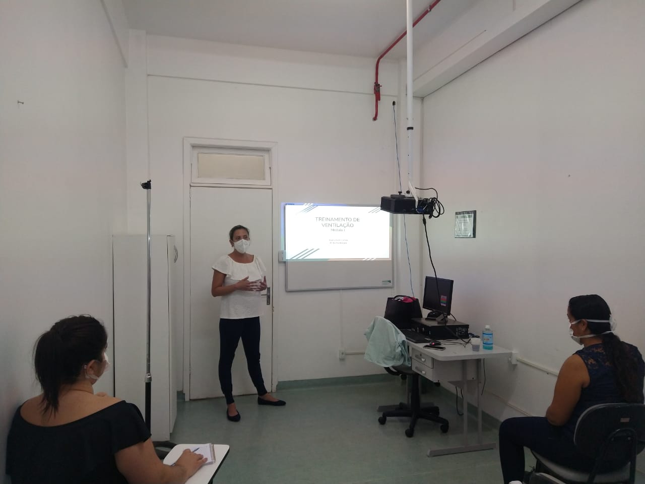 A fisioterapeuta, Bianca Kuhn Cohen, explica que o objetivo da instrução é capacitar, principalmente, os novos trabalhadores do HMGV e atualizar os antigos. “A partir do módulo vão surgindo dúvidas e sugestões para novos treinamentos. O curso é básico para que seja entendido o que acontece com o paciente. A ventilação mecânica é de responsabilidade dos médicos, dos fisioterapeutas e dos enfermeiros, mas os demais profissionais de saúde precisam entender os parâmetros ventilatórios na hora da checagem dos sinais do paciente”, esclarece Bianca.