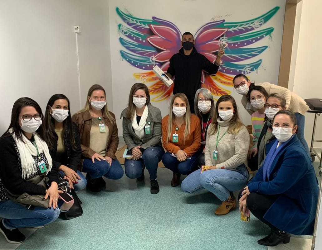 Artista faz grafite em corredor do Hospital Tramandaí para agradecer trabalho dos profissionais