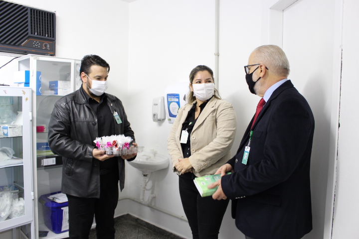 As trabalhadoras das áreas de enfermagem, técnica de enfermagem e higienização da Clínica de Saúde da Mulher (Clisam), que é uma das unidades geridas pela Fundação Hospitalar Getúlio Vargas (FHGV), receberam uma homenagem pelas datas comemorativas deste mês. Nesta quinta-feira (20/05), é o Dia Nacional dos Técnicos e dos Auxiliares de Enfermagem; no último dia 18, comemorou-se o Dia do Higienizador; e no dia 12, celebrou-se o Dia Internacional da Enfermagem. A higienizadora da Clisam, Sônia Terezinha Preto, recebeu um mimo em reconhecimento ao trabalho prestado, e as profissionais da enfermagem, receberam através de doações uma planta suculenta, e o livro “Conheça Jesus”, de Norbert Lieth.