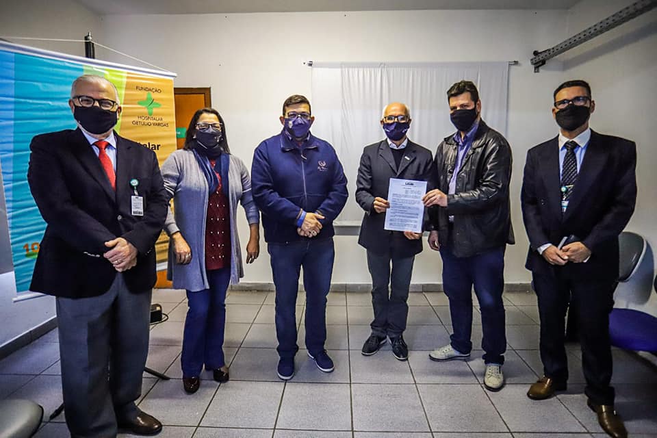 Na tarde desta quinta-feira (20/05), a Fundação Hospitalar Getúlio Vargas (FHGV) firmou um termo de cooperação com a Universidade LaSalle (UNILASALLE) com o objetivo de promover atividades de educação e pesquisa, bem como conceder descontos em cursos de graduação, pós-graduação e extensão para os trabalhadores e da Fundação e os seus dependentes. O ato contou com a presença dos coordenadores de diferentes unidades e da Diretoria Executiva da FHGV, da vice-prefeita de Sapucaia do Sul, Imilia de Souza, e do prefeito, Volmir Rodrigues. A Prefeitura também já firmou esse acordo para beneficiar os servidores do Executivo Municipal.