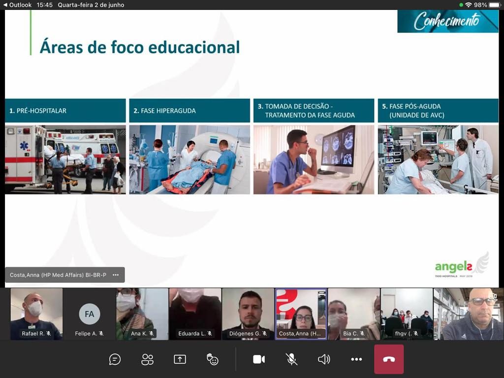 A exposição sobre o Angels para os profissionais do HMGV foi feita pela enfermeira, Anna Caroline Abranches da Costa, que participa da inciativa desde 2017, possui especialização em gestão de qualidade da saúde e MBA em gestão da saúde. O coordenador da Linha de Cuidado em AVC da Fundação, Diógenes Zãn, neurologista pós-graduado em neurologia vascular explica que essa iniciativa visa a melhoria do atendimento do AVC. “Aqui no Brasil, iniciou em 2016 com dez hospitais. Atualmente, 362 hospitais no país participam e 112 países integram o Angels, totalizando mais de 4.150 hospitais registrados. A melhoria na qualidade do atendimento ocorre por meio de treinamentos com as equipes assistenciais e administrativas dos hospitais”, afirma Zãn.